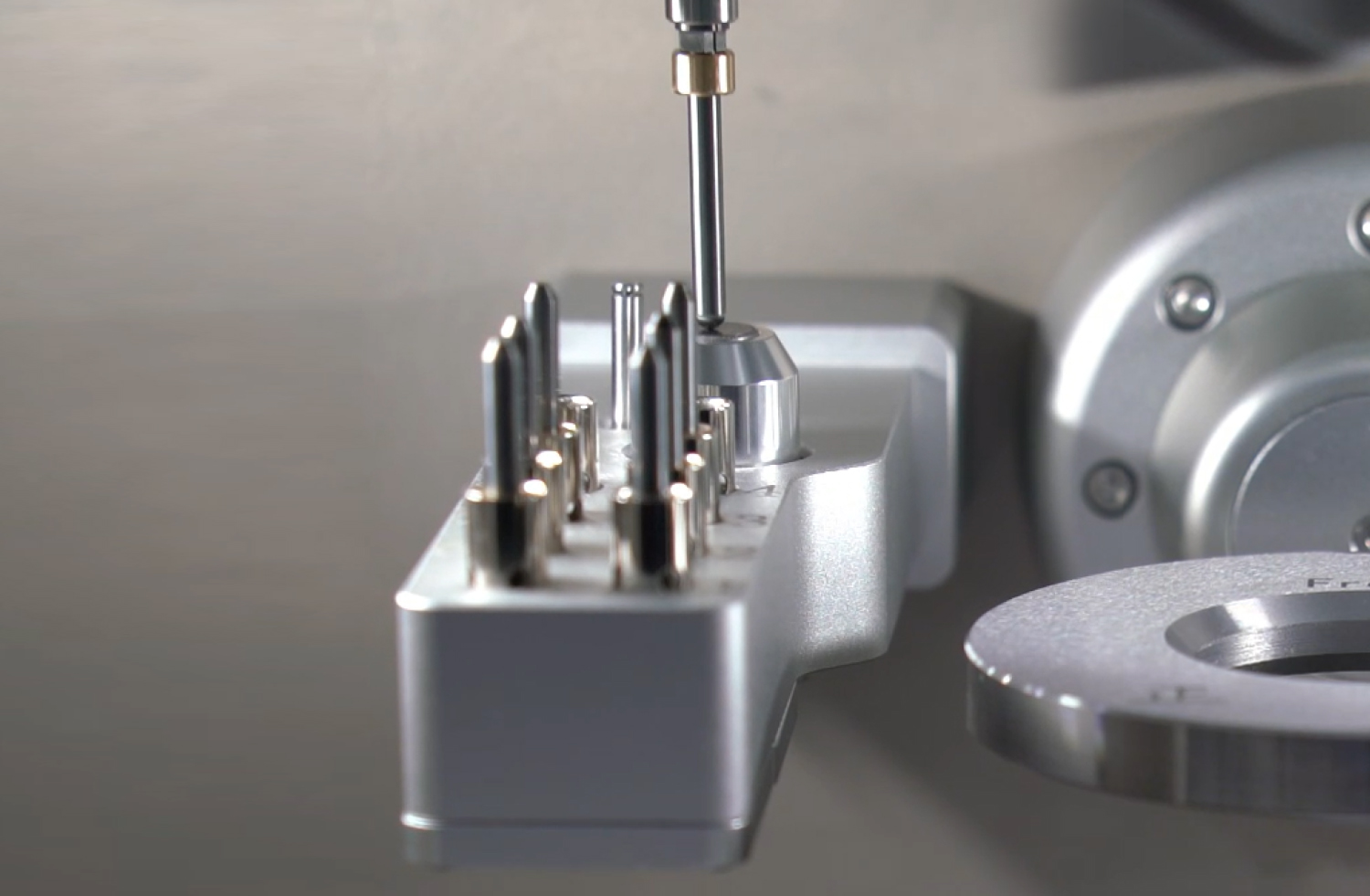 and calibrates the tool length and diameter, ensuring machining