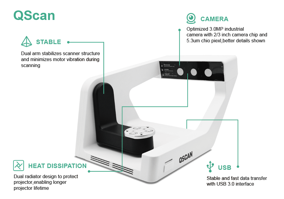 Lab work doesn’t stop, and neither should your equipment. The QScan features a robust dual radiator design for advanced heat dissipation. This intelligent thermal management system actively protects the internal projector, significantly extending its operational lifespan and ensuring uninterrupted performance, even under the most rigorous, continuous scanning schedules.
