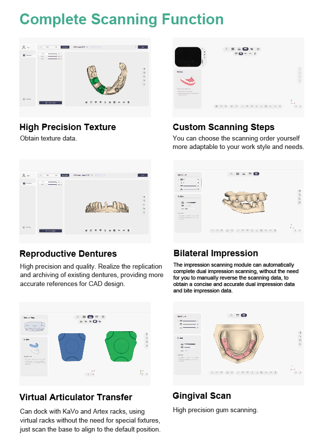 Achieve impeccable dual impression data without manual reversal. The impression scanning module automatically completes bilateral impression scanning, delivering concise and accurate dual impression and bite impression data with unmatched efficiency – vital for complex implant and bridge cases.